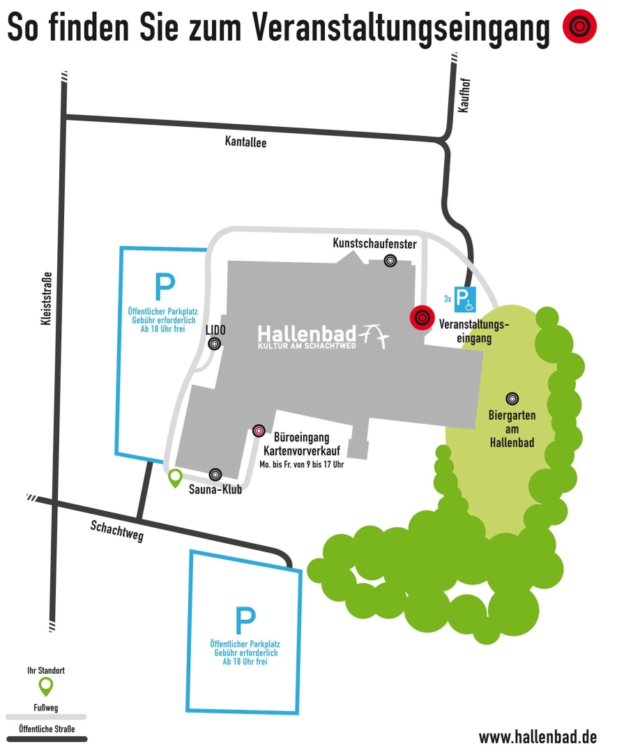 Wichtig: Der Veranstaltungseingang ist am Ende der Kantallee – nicht im Schachtweg